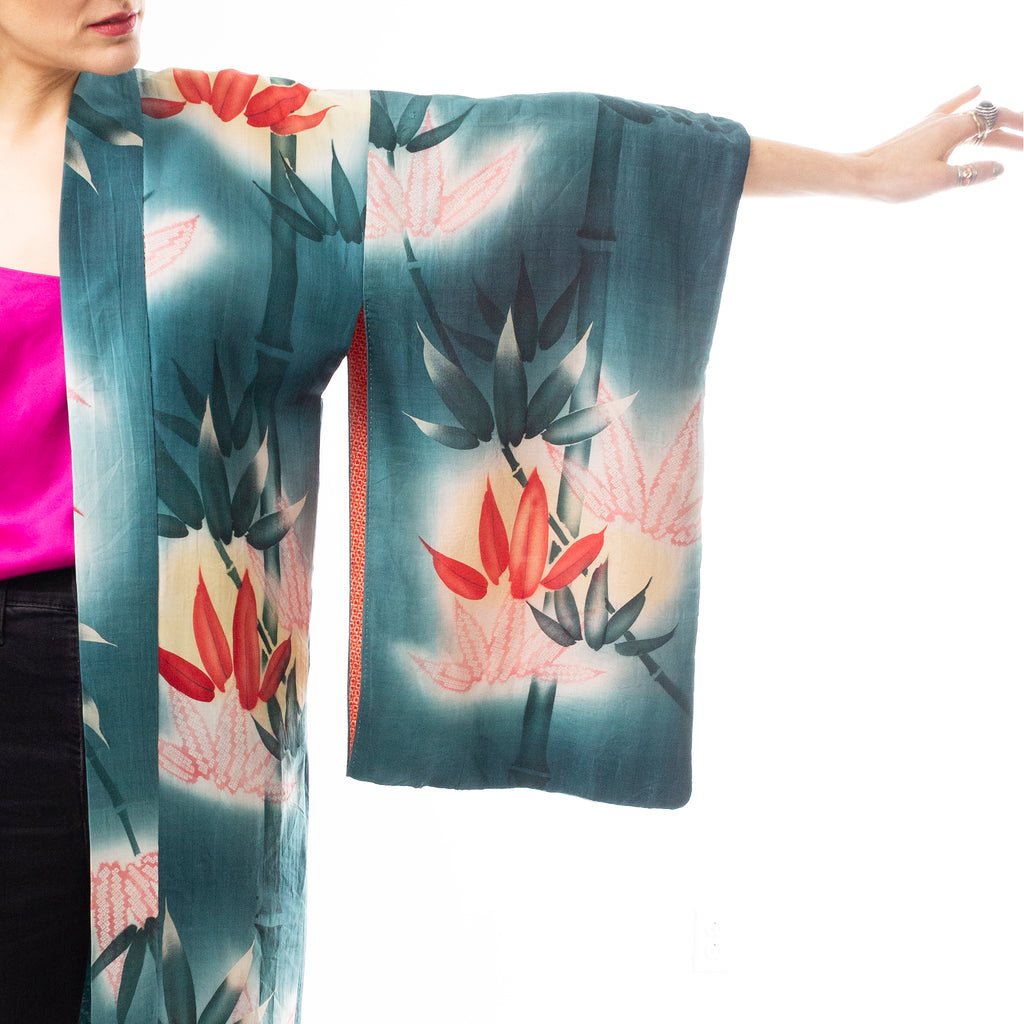 Sage Green Bamboo Leaves Kimono