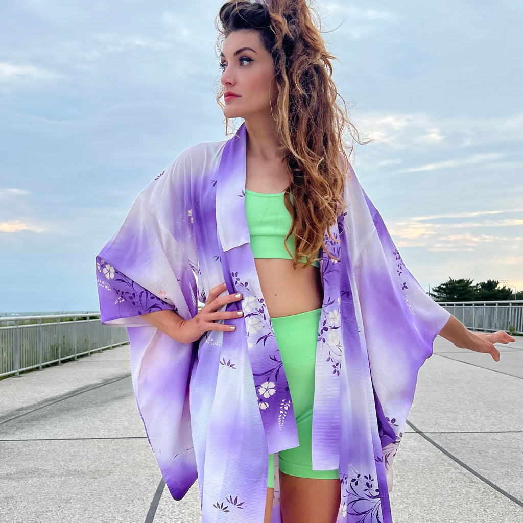 Lilac Floral Summer Silk Kimono